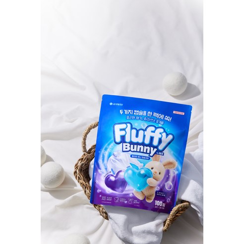빨래의 완성은 향기입니다. 플러피버니 라인은 포근한 코튼향과 고급스러운 화이트머스크향이 완벽하게 블렌딩되어, 마치 갓 세탁한 호텔 침구 속에 들어간 듯한 기분을 선사합니다. 실내에서 건조되는 동안 집안 전체에 은은한 향기가 퍼지는 효과까지 누릴 수 있습니다.